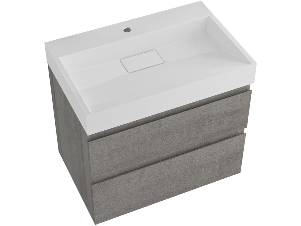 CERANO - Koupelnová skříňka Carole - betonově šedá + umyvadlo z lit. mramoru Vita - otvor - bílá matná - 70x58x46 cm