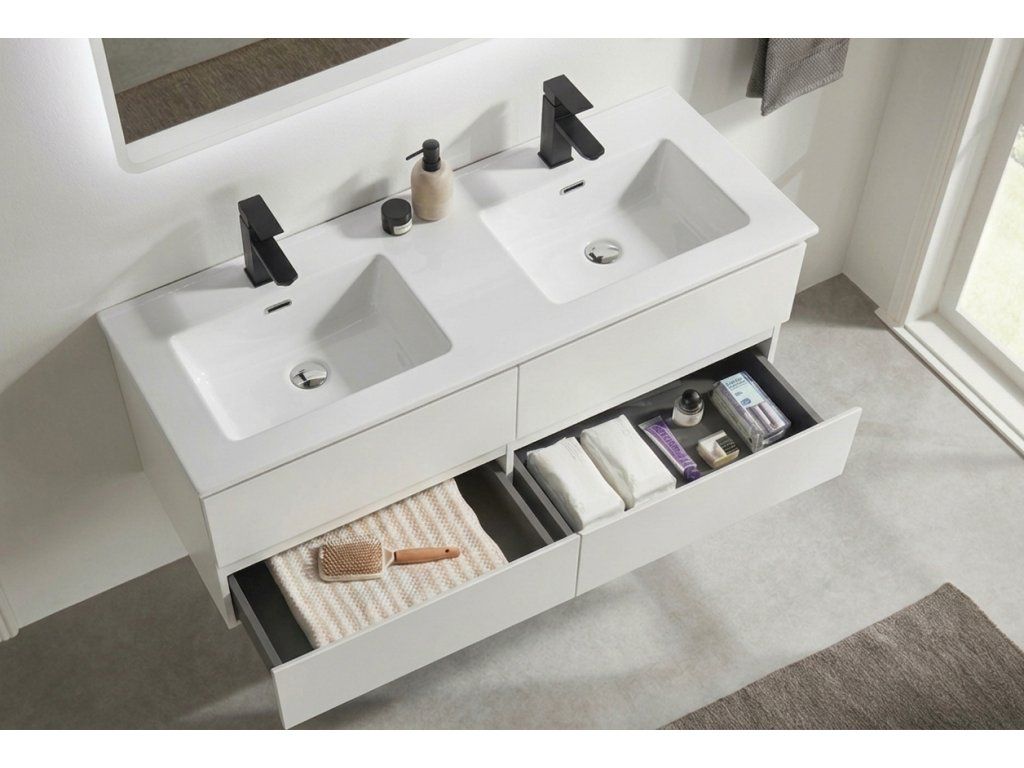 CERANO - Koupelnová skříňka Carole - bílá matná + keramické dvojumyvadlo Novo - bílá lesklá - 121x49,5x46,5 cm