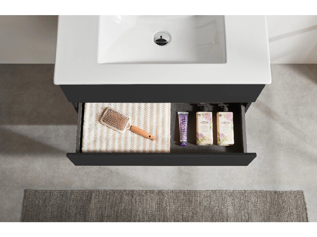 CERANO - Koupelnová skříňka Carole - černá matná + keramické umyvadlo Novo - bílá lesklá - 71x49,5x46,5 cm