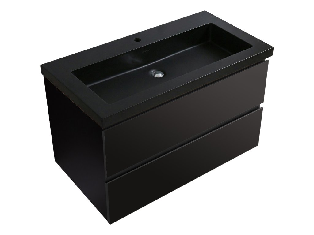CERANO - Koupelnová skříňka Carole - černá matná + umyvadlo z lit. Mramoru Ovo - černá matná - 101x49,5x46,5 cm