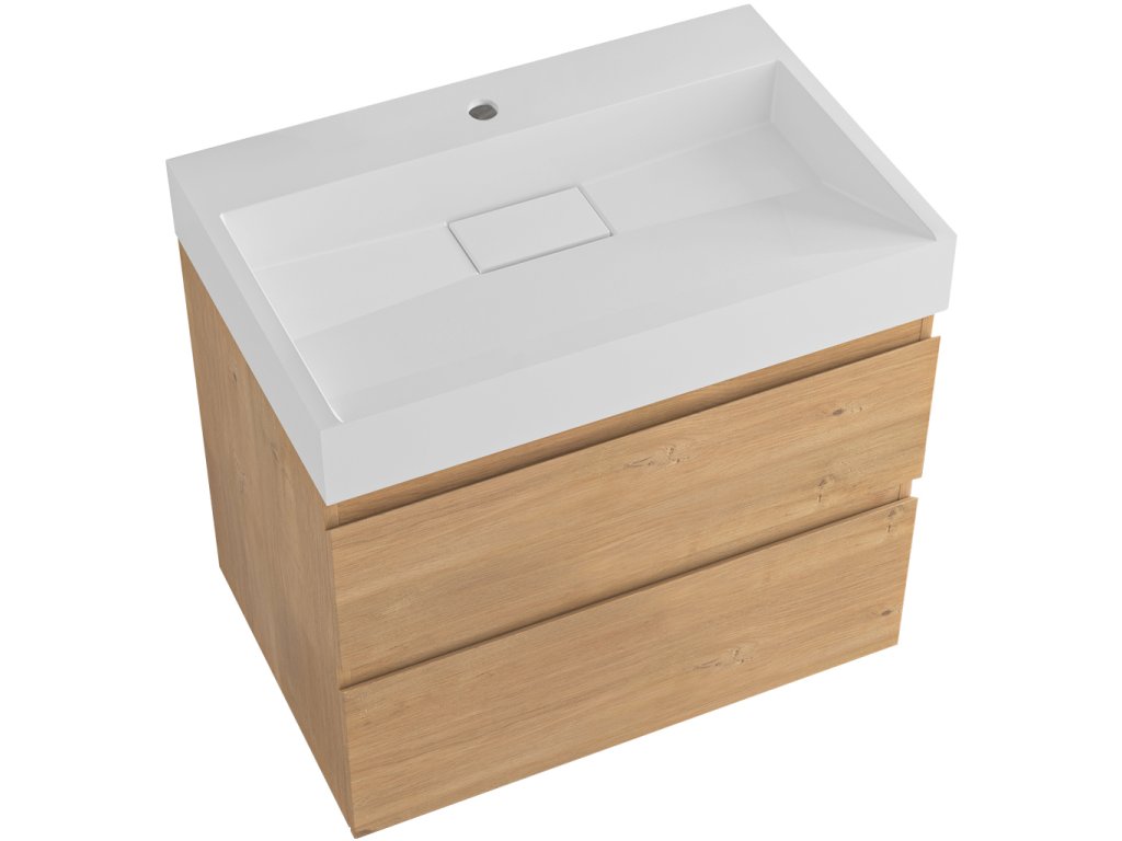 CERANO - Koupelnová skříňka Carole - dub medový + umyvadlo z lit. mramoru Vita - otvor - bílá lesklá - 70x58x46 cm