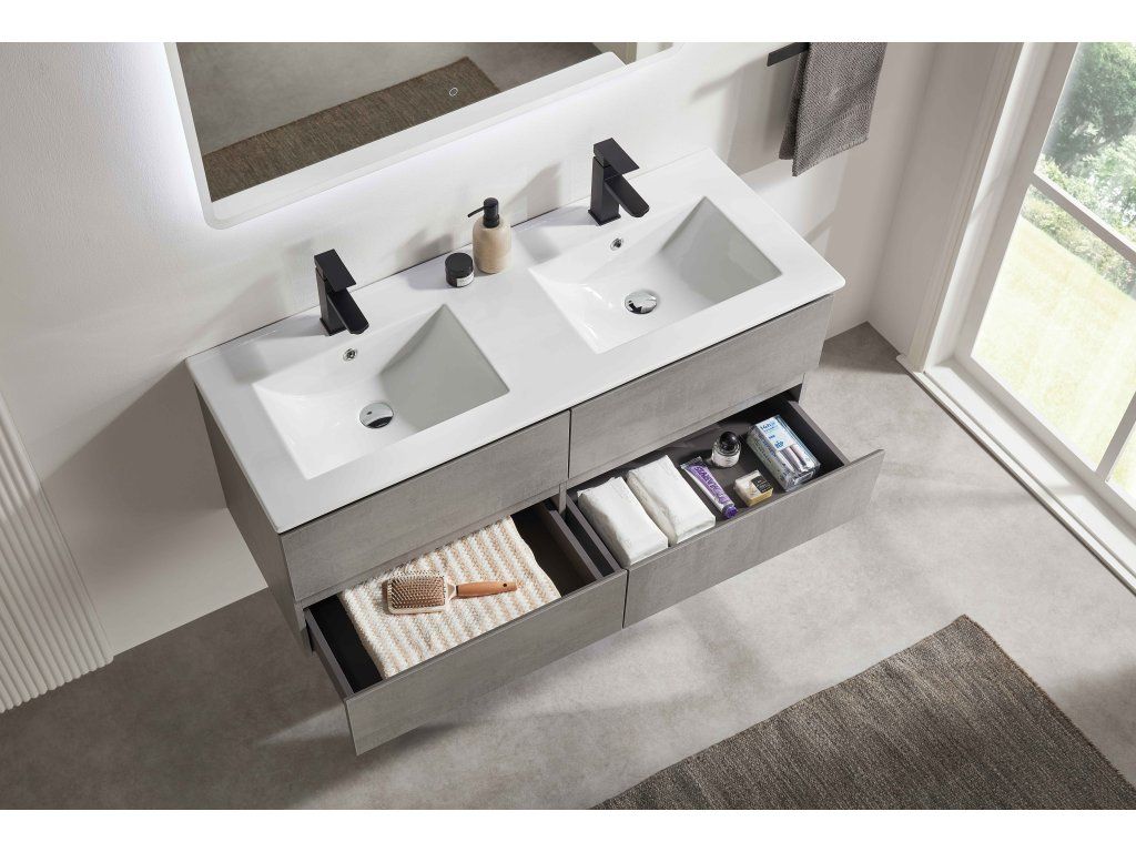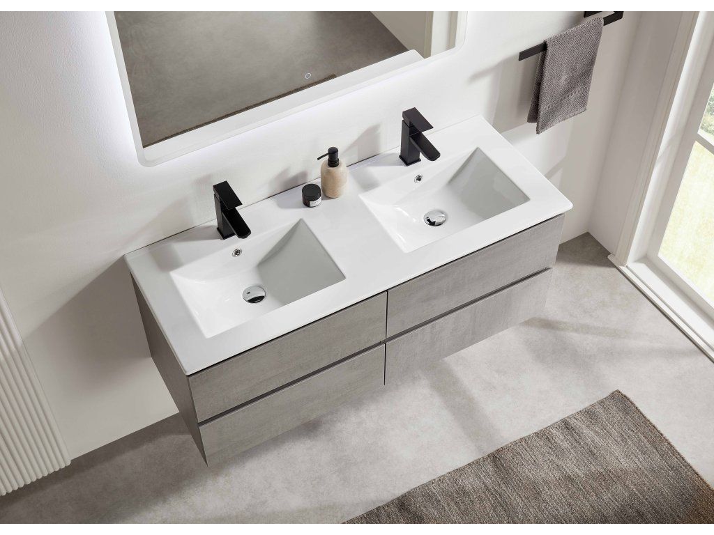 CERANO - Koupelnová skříňka Carole + keramické dvojumyvadlo Todo - betonově šedá - 121x50x46,5 cm