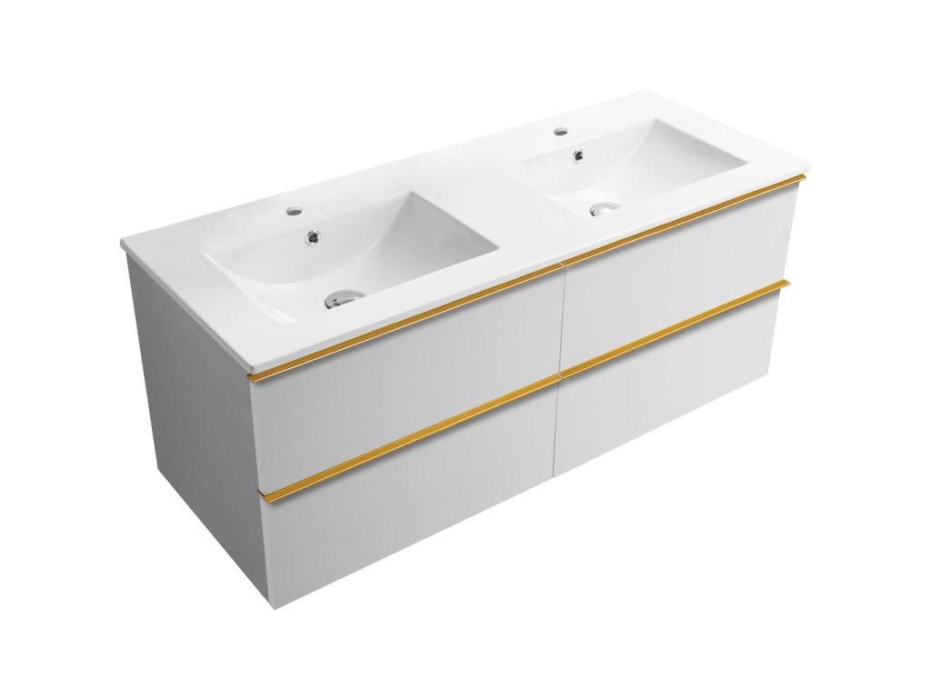CERANO - Koupelnová skříňka pod umyvadlo s úchytkou Velora + keramické umyvadlo Todo - bílá matná, zlatá úchytka - 119x53x45,2 cm