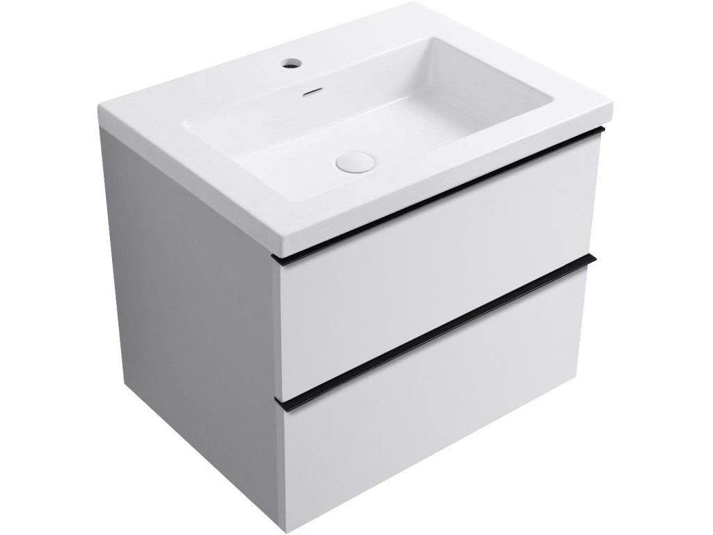 CERANO - Koupelnová skříňka Velora - bílá lesklá - úchytka černá + umyvadlo z lit. mramoru Ovo - bílá matná - 59x53x46 cm