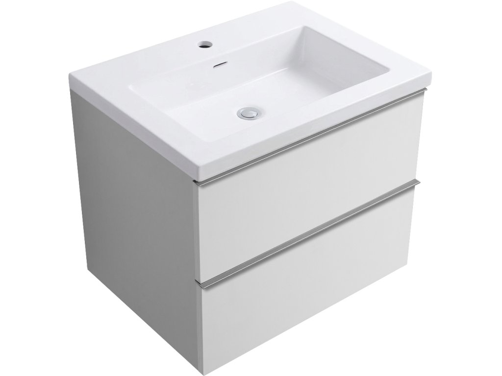 CERANO - Koupelnová skříňka Velora - bílá lesklá - úchytka chromová + keramické umyvadlo Ovo - bílá matná - 59x53x46 cm
