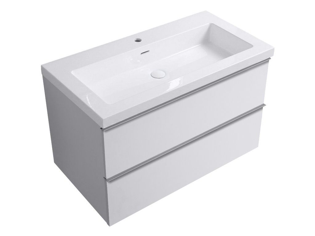 CERANO - Koupelnová skříňka Velora - bílá lesklá - úchytka chromová + umyvadlo z lit. mramoru Ovo - bílá matná - 99x53x46 cm