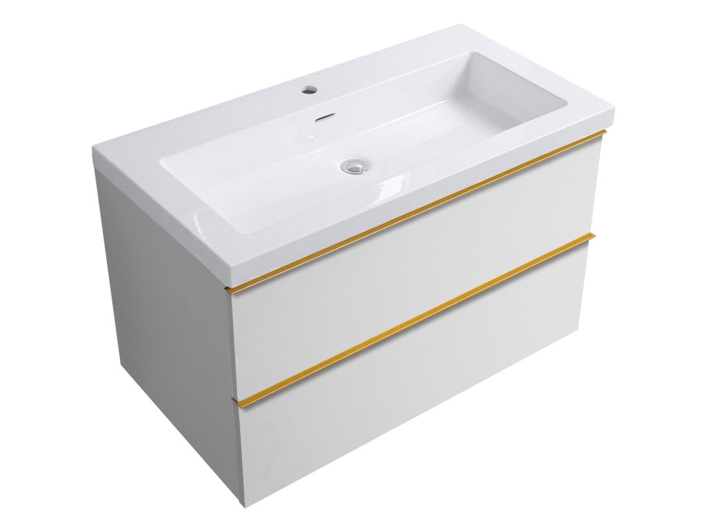 CERANO - Koupelnová skříňka Velora - bílá lesklá - úchytka zlatá + keramické umyvadlo Ovo - bílá matná - 79x53x46 cm