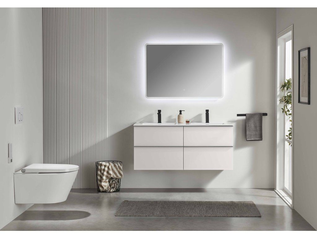 CERANO - Koupelnová skříňka Velora - bílá matná, úchytka chrom + keramické umyvadlo Todo - 121x55x46,5 cm