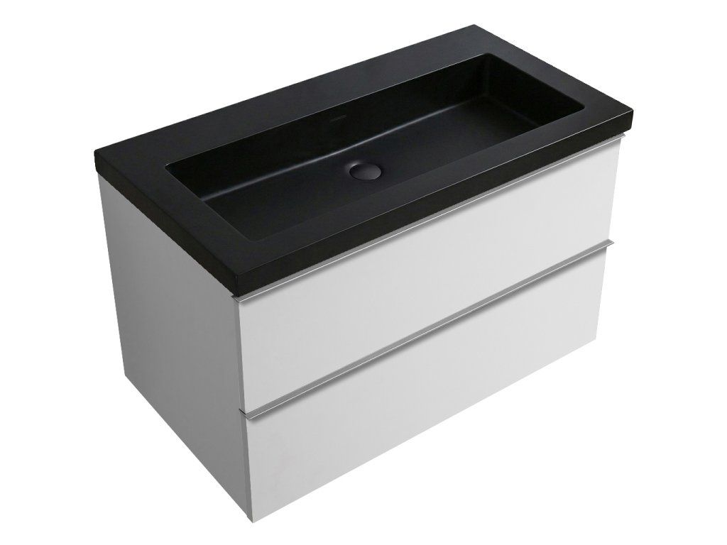 CERANO - Koupelnová skříňka Velora - bílá matná, úchytka chrom + umyvadlo z lit. mramoru Ovo - černá matná - 100,5x58x46,5 cm