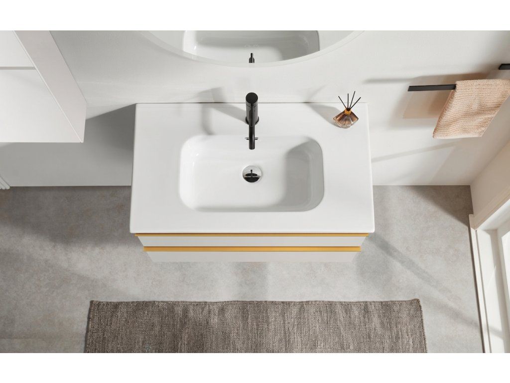 CERANO - Koupelnová skříňka Velora - bílá matná, úchytka zlatá + keramické umyvadlo Novo - bílá lesklá - 71x54,5x46,5 cm