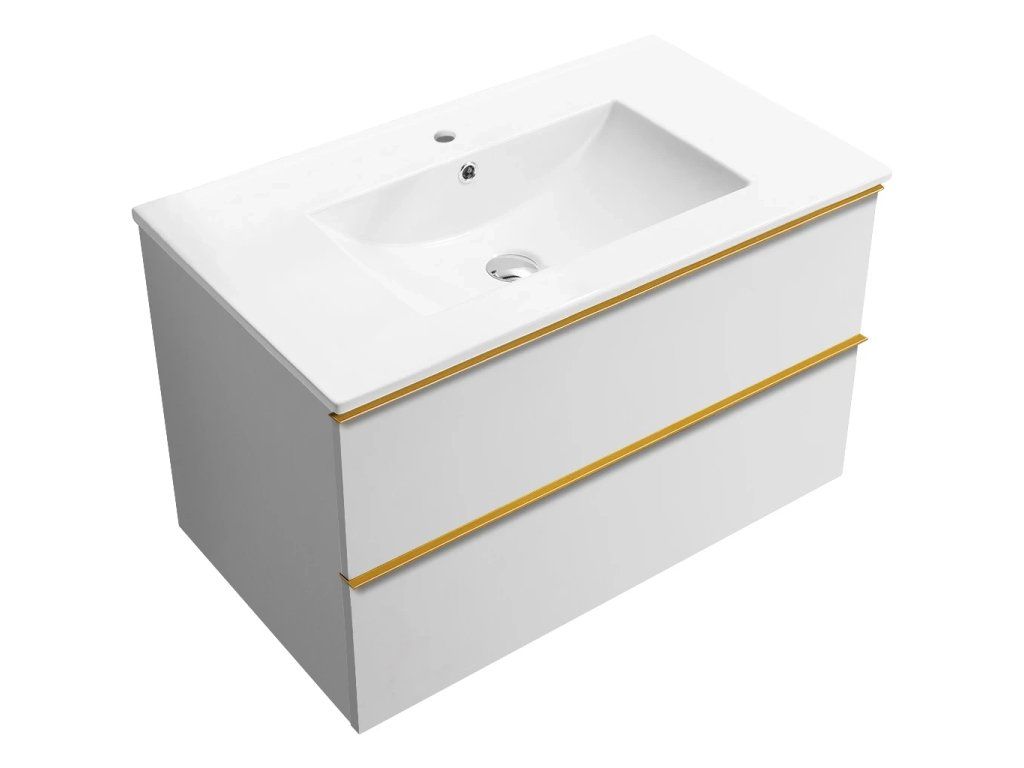 CERANO - Koupelnová skříňka Velora - bílá matná, úchytka zlatá + keramické umyvadlo Todo - 101x55x46,5 cm