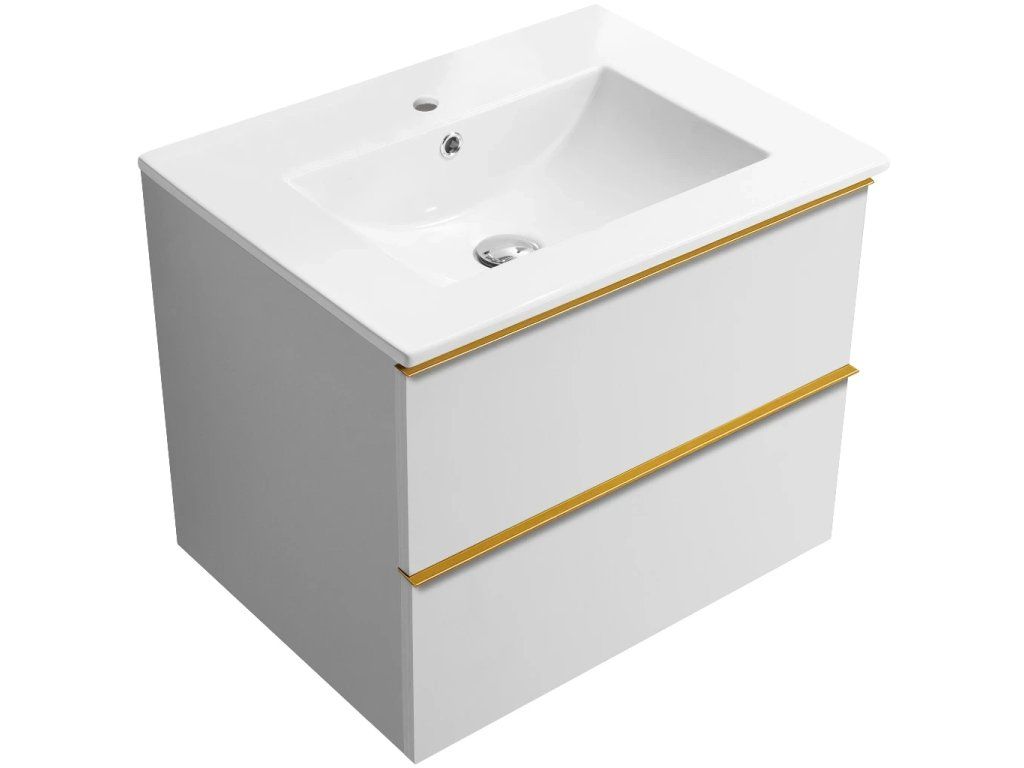 CERANO - Koupelnová skříňka Velora - bílá matná, úchytka zlatá + keramické umyvadlo Todo - 71x55x46,5 cm