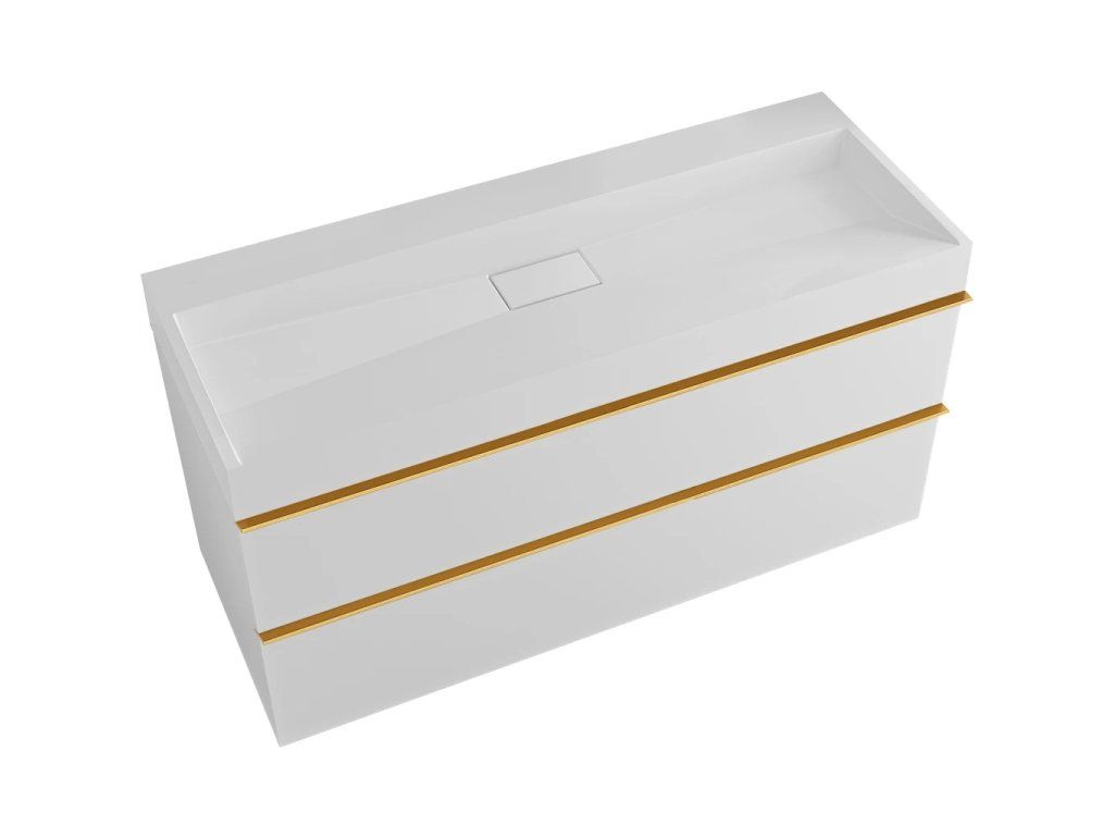 CERANO - Koupelnová skříňka Velora - bílá matná, úchytka zlatá + umyvadlo z lit. mramoru Vita - bílá matná - 100x63x46,5 cm