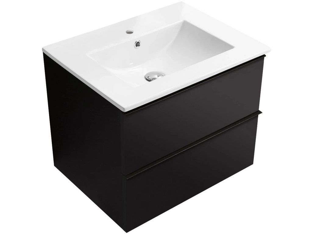 CERANO - Koupelnová skříňka Velora - černá matná, úchytka černá + keramické umyvadlo Todo - 61x55x46,5 cm