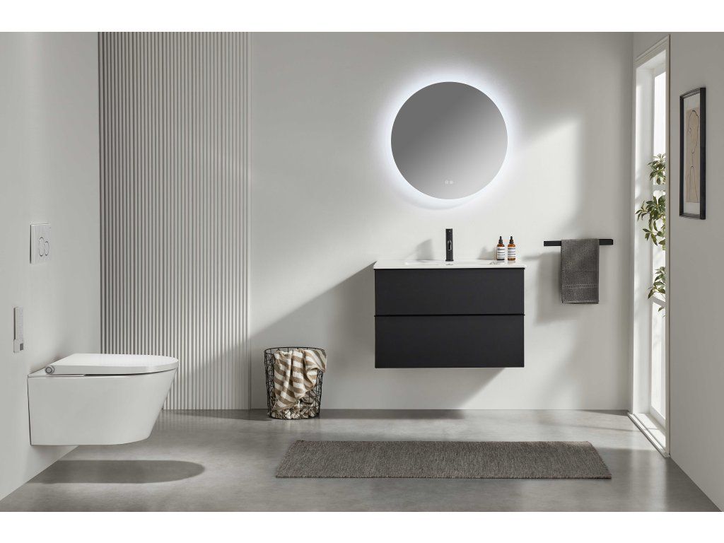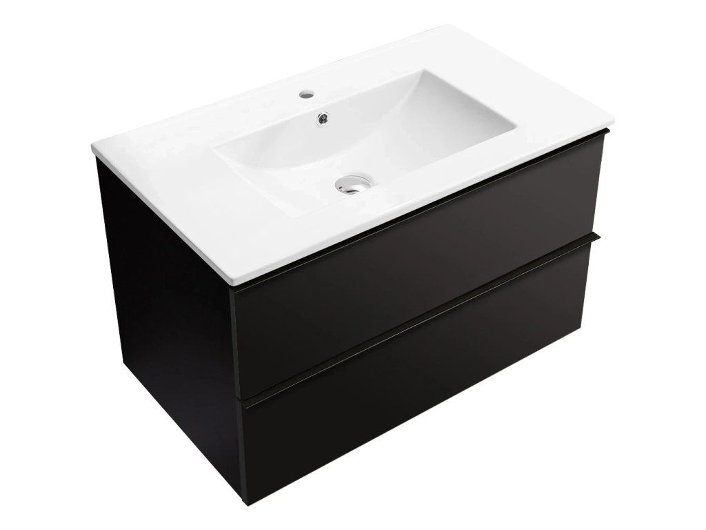 CERANO - Koupelnová skříňka Velora - černá matná, úchytka černá + keramické umyvadlo Todo - 81x55x46,5 cm