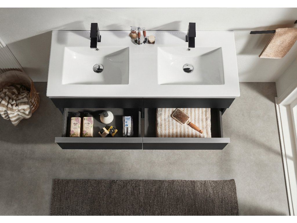 CERANO - Koupelnová skříňka Velora - černá matná, úchytka chrom + keramické umyvadlo Todo - 121x55x46,5 cm