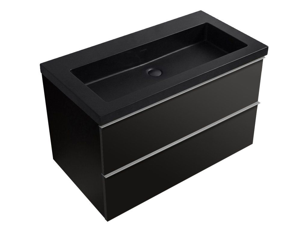 CERANO - Koupelnová skříňka Velora - černá matná, úchytka chrom + umyvadlo z lit. mramoru Ovo - černá matná - 80,5x58x46,5 cm