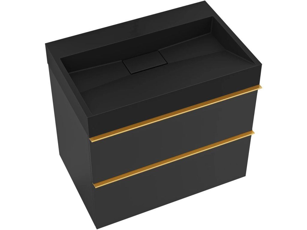 CERANO - Koupelnová skříňka Velora - černá matná, úchytka zlatá + umyvadlo z lit. mramoru Vita - černá matná - 70x63x46,5 cm
