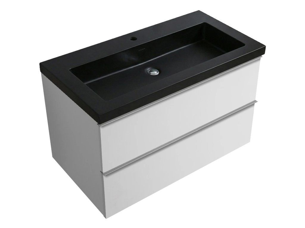 CERANO - Koupelnová skříňka Velora - černá matná - úchytka chromová + umyvadlo z lit. Mramoru Ovo - bílá matná - 79x53x46 cm