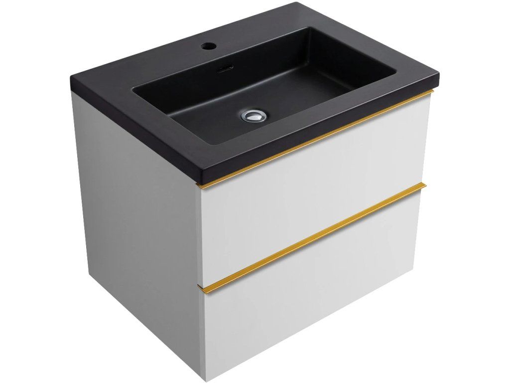 CERANO - Koupelnová skříňka Velora - černá matná - úchytka zlatá + umyvadlo z lit. Mramoru Ovo - bílá matná - 59x53x46 cm