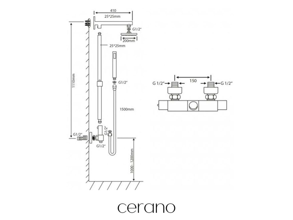 CERANO - Sprchový nástěnný sloup Elma - termostatická sprchová baterie - chrom
