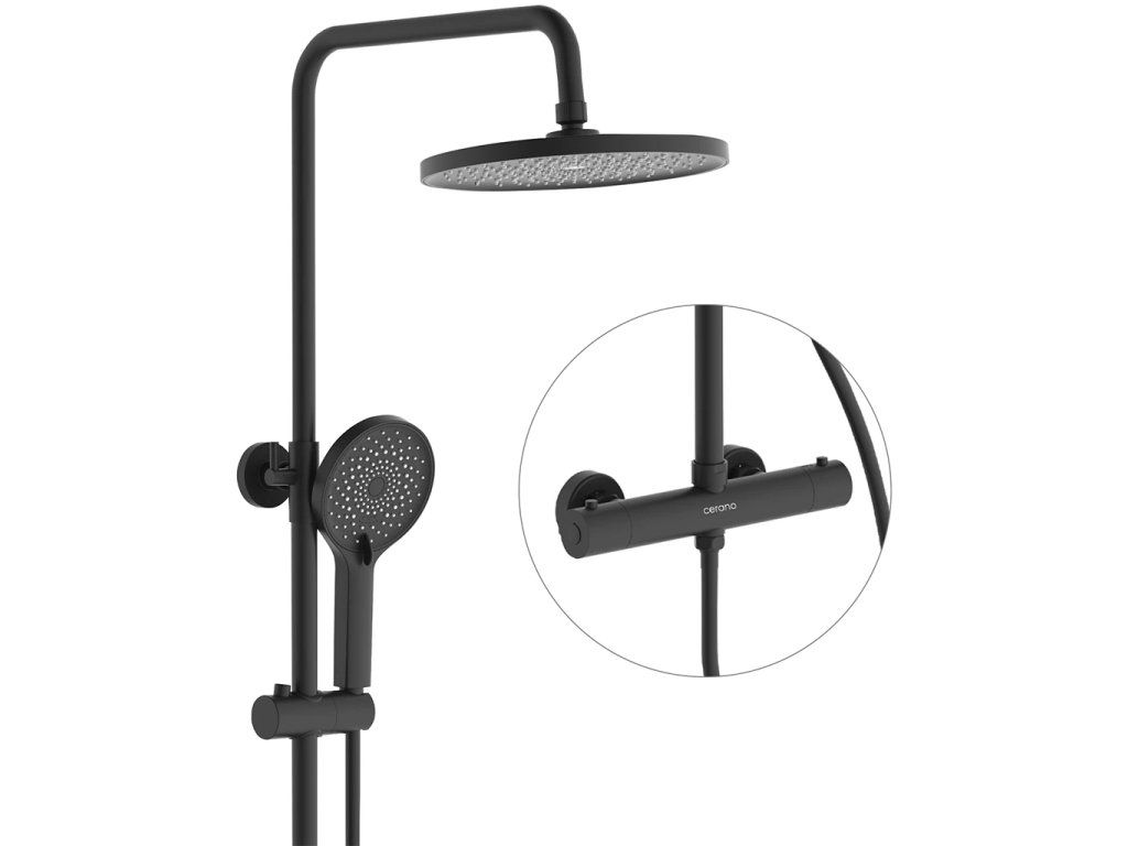 CERANO - Sprchový nástěnný sloup Selma - termostatická sprchová baterie - černá matná