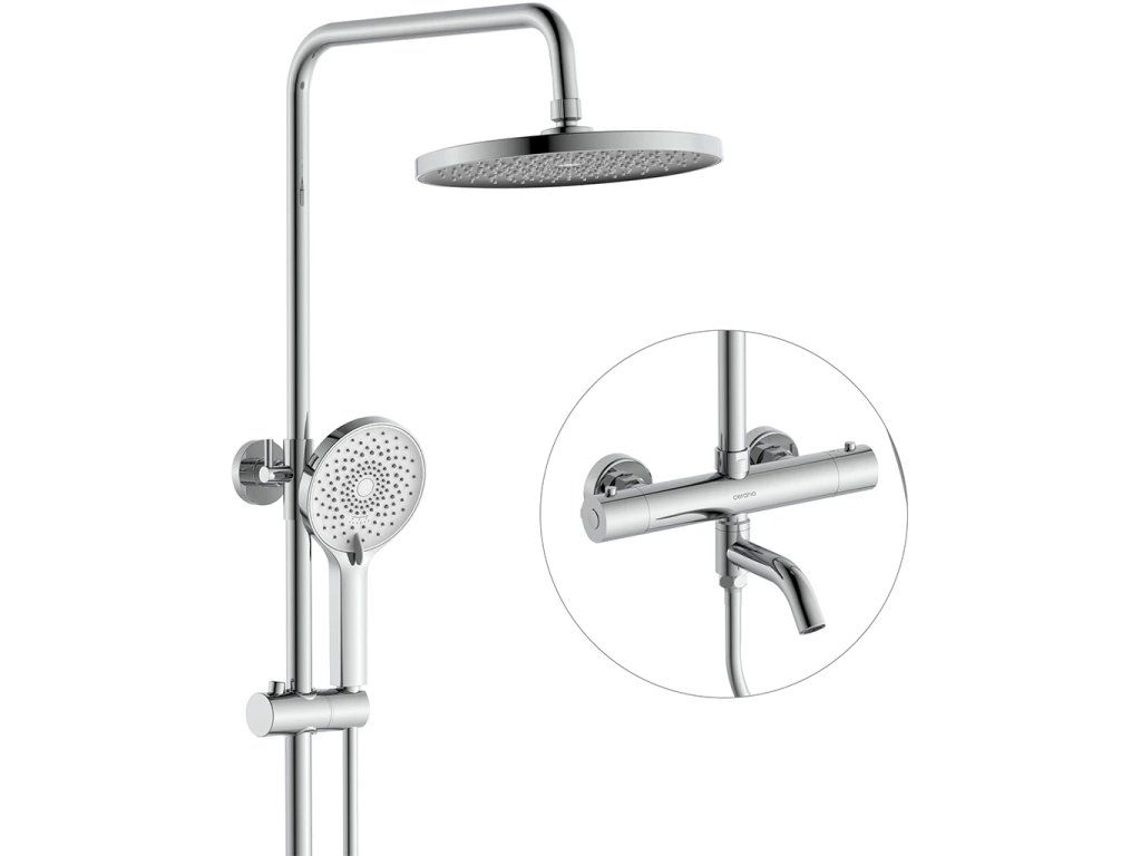 CERANO - Sprchový nástěnný sloup Selma - termostatická vanová otočná baterie - chrom - 80-130,4 cm