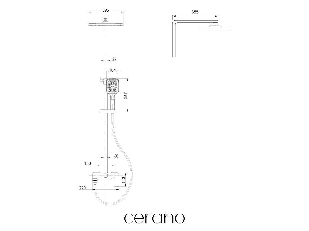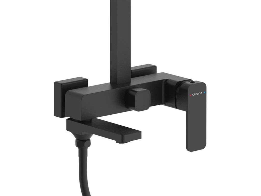 CERANO - Sprchový nástěnný sloup Zenira - vanová otočná baterie - černá matná