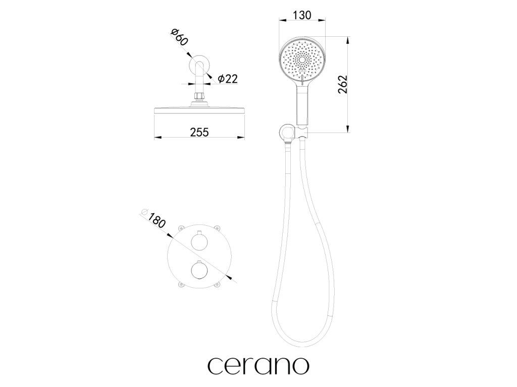 CERANO - Sprchová podomítková souprava Tiziana - termostatická - box - chrom