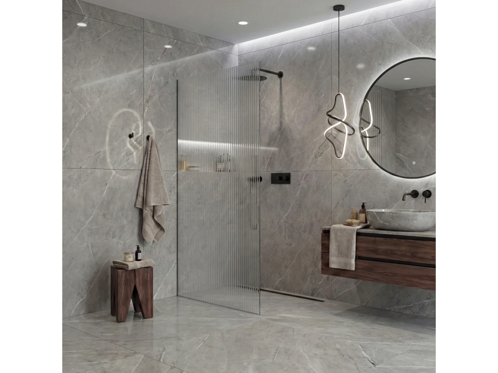 Díky promyšlené konstrukci je sklo uchyceno skrytě do profilů, které lze zapustit zcela nebo částečně ( až 14 mm do obkladů či dlažby). Bez rušivých vzpěr tak vzniká čisté, elegantní řešení, které podtrhne moderní vzhled koupelny a dodá prostoru maximální vizuální lehkost.