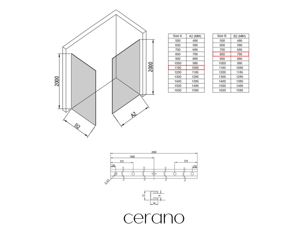 V rámci této série nabízíme širokou škálu rozměrů, abychom uspokojili různé potřeby našich zákazníků. Všechny sprchové kouty, dveře a zástěny značky Cerano jsou plně kompatibilní se sprchovými vaničkami Cerano ve stejných rozměrech, což zajišťuje bezproblémovou instalaci a dokonalé sladění. Sprchový kout lze navíc instalovat flexibilně – buď na odpovídající sprchovou vaničku, nebo přímo na podlahu podle vašich preferencí a možností koupelny.
