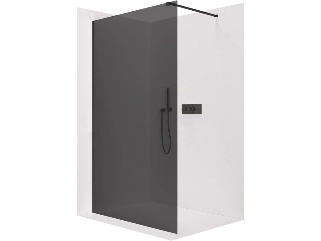CERANO - Sprchová zástěna Walk-in Onyx Cube L/P - 8 mm - hranatá vzpěra - černá matná, grafitové sklo - 110x200 cm