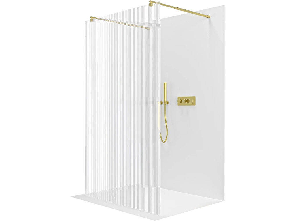 CERANO - Sprchová zástěna Walk-in Onyx Duo L/P - 8 mm - kulatá vzpěra - zlatá, rýhované sklo - 110x200 cm