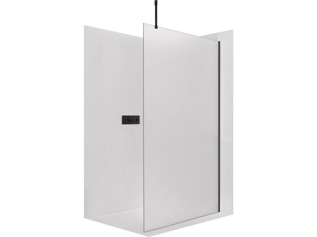 CERANO - Sprchová zástěna Walk-in Onyx Top Cube L/P - 8 mm - hranatá vzpěra - černá matná, mléčné sklo - 110x200 cm