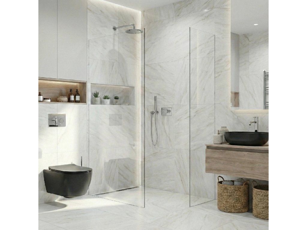Díky promyšlené konstrukci je sklo uchyceno skrytě do profilů, které lze zapustit zcela nebo částečně ( až 14 mm do obkladů či dlažby). Bez rušivých vzpěr tak vzniká čisté, elegantní řešení, které podtrhne moderní vzhled koupelny a dodá prostoru maximální vizuální lehkost.