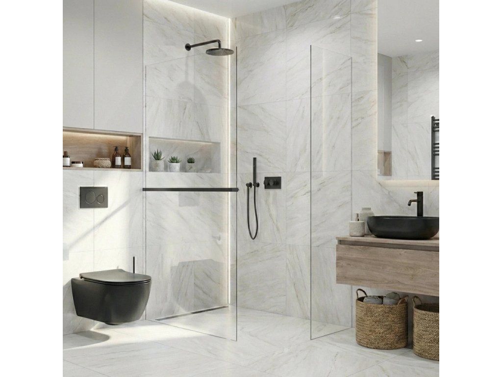 Díky promyšlené konstrukci je sklo uchyceno skrytě do profilů, které lze zapustit zcela nebo částečně ( až 14 mm do obkladů či dlažby). Bez rušivých vzpěr tak vzniká čisté, elegantní řešení, které podtrhne moderní vzhled koupelny a dodá prostoru maximální vizuální lehkost.