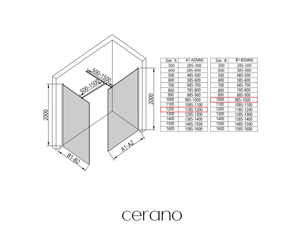 V rámci této série nabízíme širokou škálu rozměrů, abychom uspokojili různé potřeby našich zákazníků. Všechny sprchové kouty, dveře a zástěny značky Cerano jsou plně kompatibilní se sprchovými vaničkami Cerano ve stejných rozměrech, což zajišťuje bezproblémovou instalaci a dokonalé sladění. Sprchový kout lze navíc instalovat flexibilně – buď na odpovídající sprchovou vaničku, nebo přímo na podlahu podle vašich preferencí a možností koupelny.