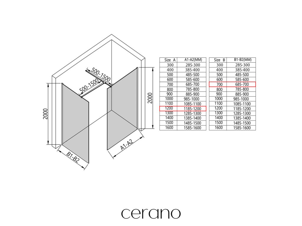 V rámci této série nabízíme širokou škálu rozměrů, abychom uspokojili různé potřeby našich zákazníků. Všechny sprchové kouty, dveře a zástěny značky Cerano jsou plně kompatibilní se sprchovými vaničkami Cerano ve stejných rozměrech, což zajišťuje bezproblémovou instalaci a dokonalé sladění. Sprchový kout lze navíc instalovat flexibilně – buď na odpovídající sprchovou vaničku, nebo přímo na podlahu podle vašich preferencí a možností koupelny.
