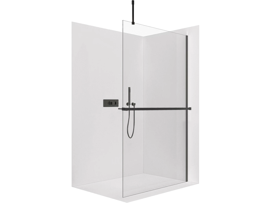 CERANO - Sprchová zástěna Walk-in Onyx Top Cube L/P - 10 mm - hranatá vzpěra + polička/držák na ručníky - černá matná, transparentní sklo - 120x200 cm