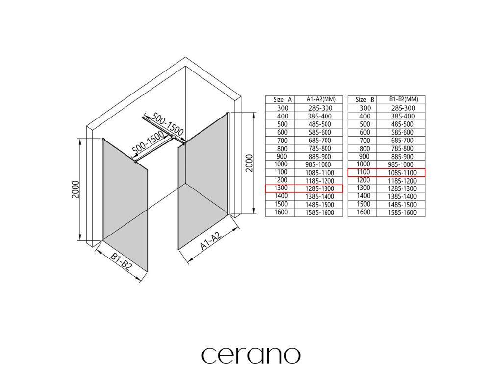 V rámci této série nabízíme širokou škálu rozměrů, abychom uspokojili různé potřeby našich zákazníků. Všechny sprchové kouty, dveře a zástěny značky Cerano jsou plně kompatibilní se sprchovými vaničkami Cerano ve stejných rozměrech, což zajišťuje bezproblémovou instalaci a dokonalé sladění. Sprchový kout lze navíc instalovat flexibilně – buď na odpovídající sprchovou vaničku, nebo přímo na podlahu podle vašich preferencí a možností koupelny.