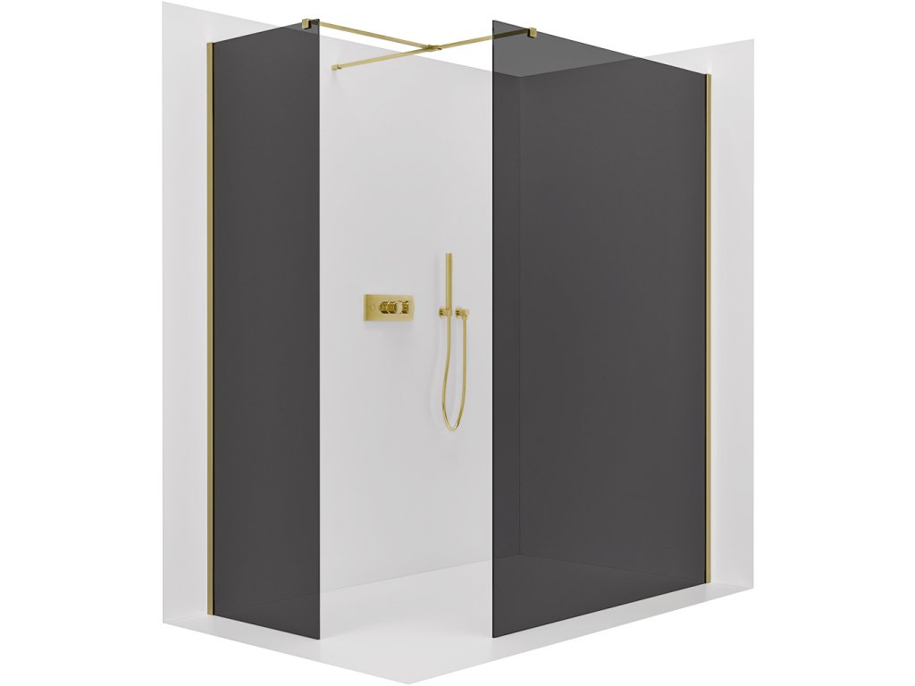 CERANO - Sprchová zástěna Walk-in Onyx T L/P - 8 mm - hranatá vzpěra - zlatá, grafitové sklo - 130x50x200 cm