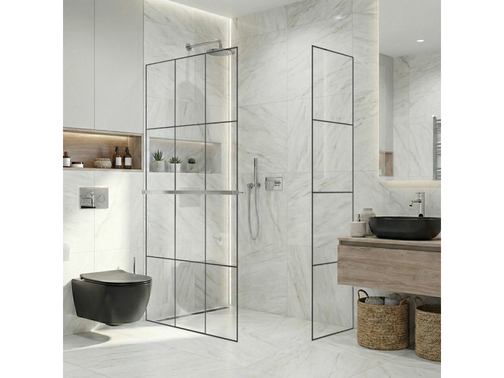 Díky promyšlené konstrukci je sklo uchyceno skrytě do profilů, které lze zapustit zcela nebo částečně ( až 14 mm do obkladů či dlažby). Bez rušivých vzpěr tak vzniká čisté, elegantní řešení, které podtrhne moderní vzhled koupelny a dodá prostoru maximální vizuální lehkost.