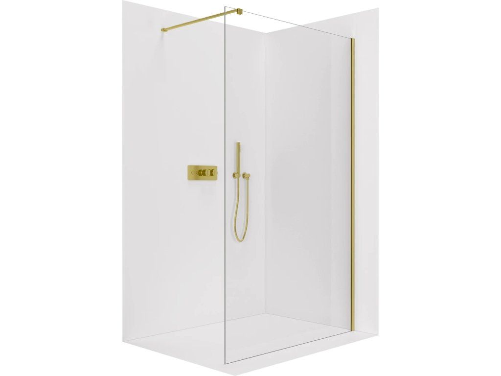 CERANO - Sprchová zástěna Walk-in Onyx Cube L/P - 8 mm - hranatá vzpěra - zlatá, transparentní sklo - 140x200 cm