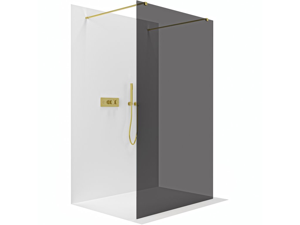 CERANO - Sprchová zástěna Walk-in Onyx Duo L/P - 8 mm - hranatá vzpěra - zlatá, grafitové sklo - 140x200 cm