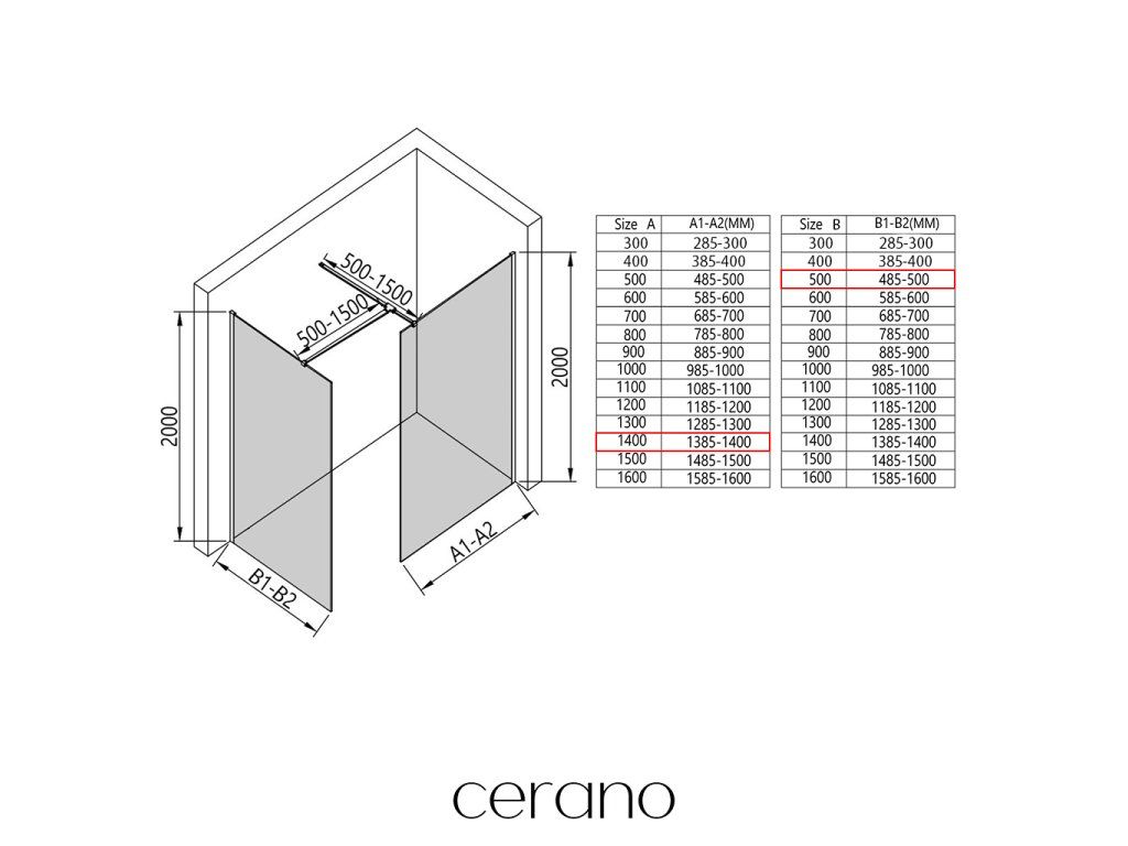 V rámci této série nabízíme širokou škálu rozměrů, abychom uspokojili různé potřeby našich zákazníků. Všechny sprchové kouty, dveře a zástěny značky Cerano jsou plně kompatibilní se sprchovými vaničkami Cerano ve stejných rozměrech, což zajišťuje bezproblémovou instalaci a dokonalé sladění. Sprchový kout lze navíc instalovat flexibilně – buď na odpovídající sprchovou vaničku, nebo přímo na podlahu podle vašich preferencí a možností koupelny.