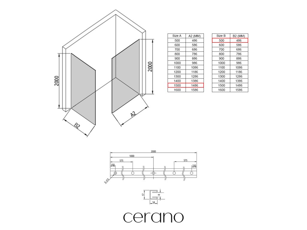 V rámci této série nabízíme širokou škálu rozměrů, abychom uspokojili různé potřeby našich zákazníků. Všechny sprchové kouty, dveře a zástěny značky Cerano jsou plně kompatibilní se sprchovými vaničkami Cerano ve stejných rozměrech, což zajišťuje bezproblémovou instalaci a dokonalé sladění. Sprchový kout lze navíc instalovat flexibilně – buď na odpovídající sprchovou vaničku, nebo přímo na podlahu podle vašich preferencí a možností koupelny.