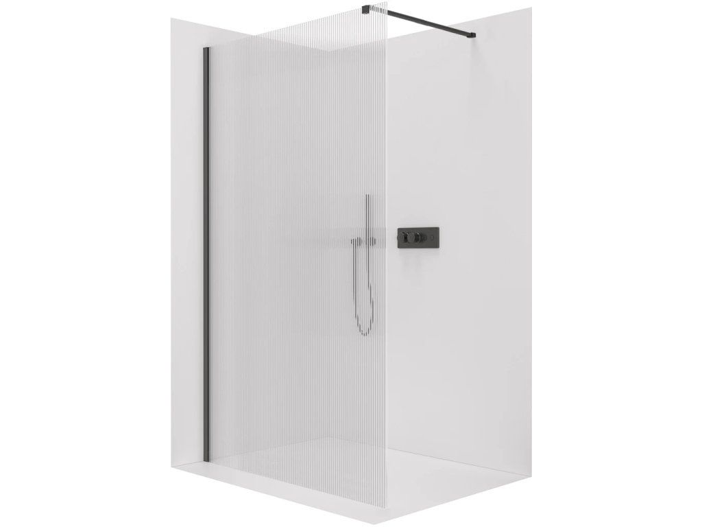 CERANO - Sprchová zástěna Walk-in Onyx Cube L/P - 8 mm - hranatá vzpěra - černá matná, rýhované sklo - 150x200 cm