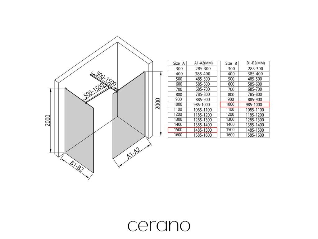V rámci této série nabízíme širokou škálu rozměrů, abychom uspokojili různé potřeby našich zákazníků. Všechny sprchové kouty, dveře a zástěny značky Cerano jsou plně kompatibilní se sprchovými vaničkami Cerano ve stejných rozměrech, což zajišťuje bezproblémovou instalaci a dokonalé sladění. Sprchový kout lze navíc instalovat flexibilně – buď na odpovídající sprchovou vaničku, nebo přímo na podlahu podle vašich preferencí a možností koupelny.