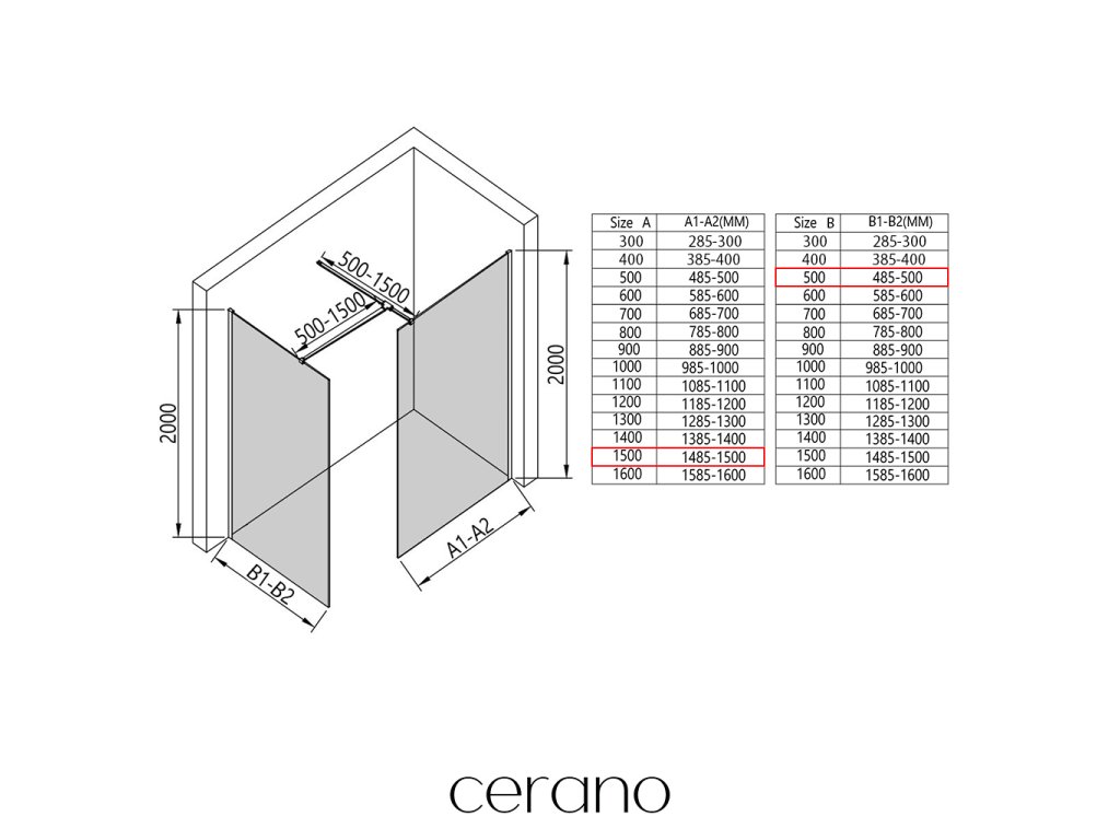 V rámci této série nabízíme širokou škálu rozměrů, abychom uspokojili různé potřeby našich zákazníků. Všechny sprchové kouty, dveře a zástěny značky Cerano jsou plně kompatibilní se sprchovými vaničkami Cerano ve stejných rozměrech, což zajišťuje bezproblémovou instalaci a dokonalé sladění. Sprchový kout lze navíc instalovat flexibilně – buď na odpovídající sprchovou vaničku, nebo přímo na podlahu podle vašich preferencí a možností koupelny.