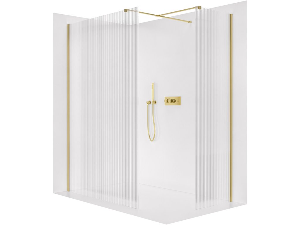 CERANO - Sprchová zástěna Walk-in Onyx T L/P - 8 mm - hranatá vzpěra - zlatá, rýhované sklo - 150x90x200 cm